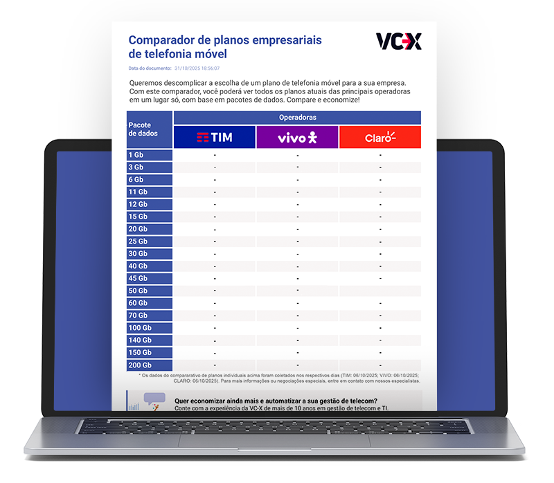 O Comparador de Planos VC-X é a documento que faltava. Ele traz dados recentes com as ofertas do mercado para mostrar exatamente onde você pode economizar.